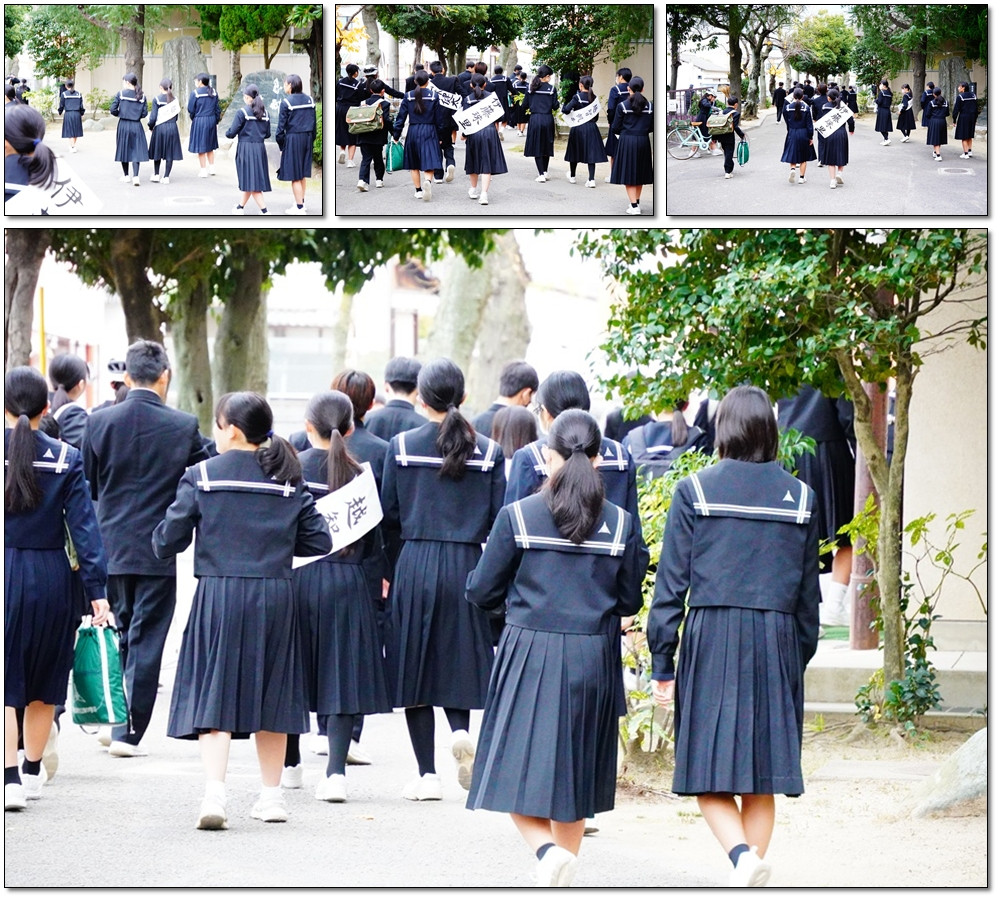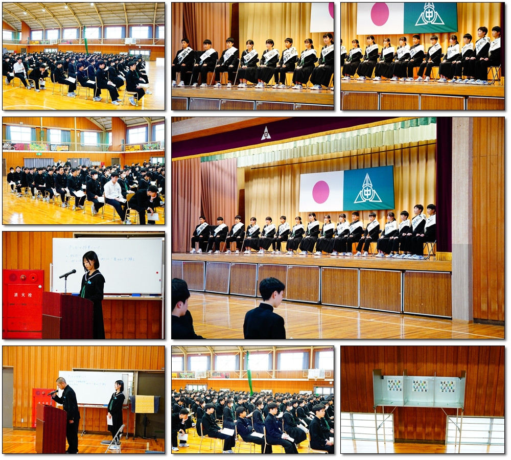2025年12月9日 17時59分 [HP管理者]朝の風景です。いよいよ明後日が生徒会役員選挙当日とあって、立候補者と応援者の声にも更に張りがあります。その中を登校してきた生徒たちが通ります。立候補者に負けないような声で挨拶できているでしょうか。明るい朝のスタートにしましょうね。また、1時間目に3年3組の道徳の授業を見に行きました。琵琶湖の再生に取り組む地域の人たちの思いから環境問題に思いを馳せ、自分たちにもできることを考えていく授業でした。「地球にできること」を考えていきましょうね。